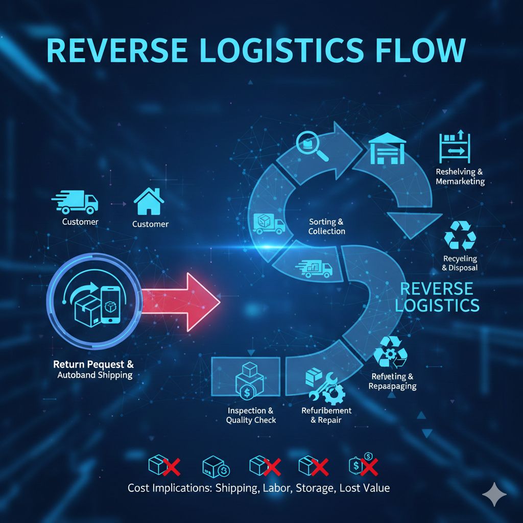 - تكاليف اللوجستيات العكسية: وهي عملية مكلفة تشمل الفرز، إعادة التعبئة، وتحديث المخزون.