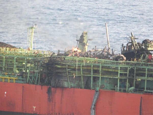 The Indian warship assisted a civilian tug hired by the shipping company for the salvage of the vessel. They provided firefighting support and said yesterday, October 22, the fire aboard the vessel has been brought under control. There were concerns of a potential secondary explosion as the vessel, which is laden with as much as 35,000 cbm of liquified petroleum gas.